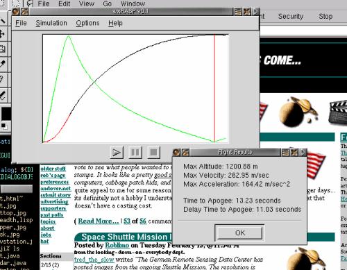 This is not a pixel-for-pixel port, I have changed the interface considerably. (And, hopefuly, for the better.) I am trying to keep the main screen as clean as possible. The 'Launch' pseudo-menu has been replaced with a more intuitive play/pause/stop system, with flight results displayed in dialog boxes. I am also working on cleaning up the backend code.
