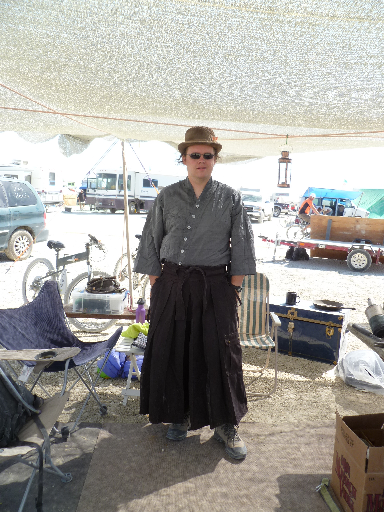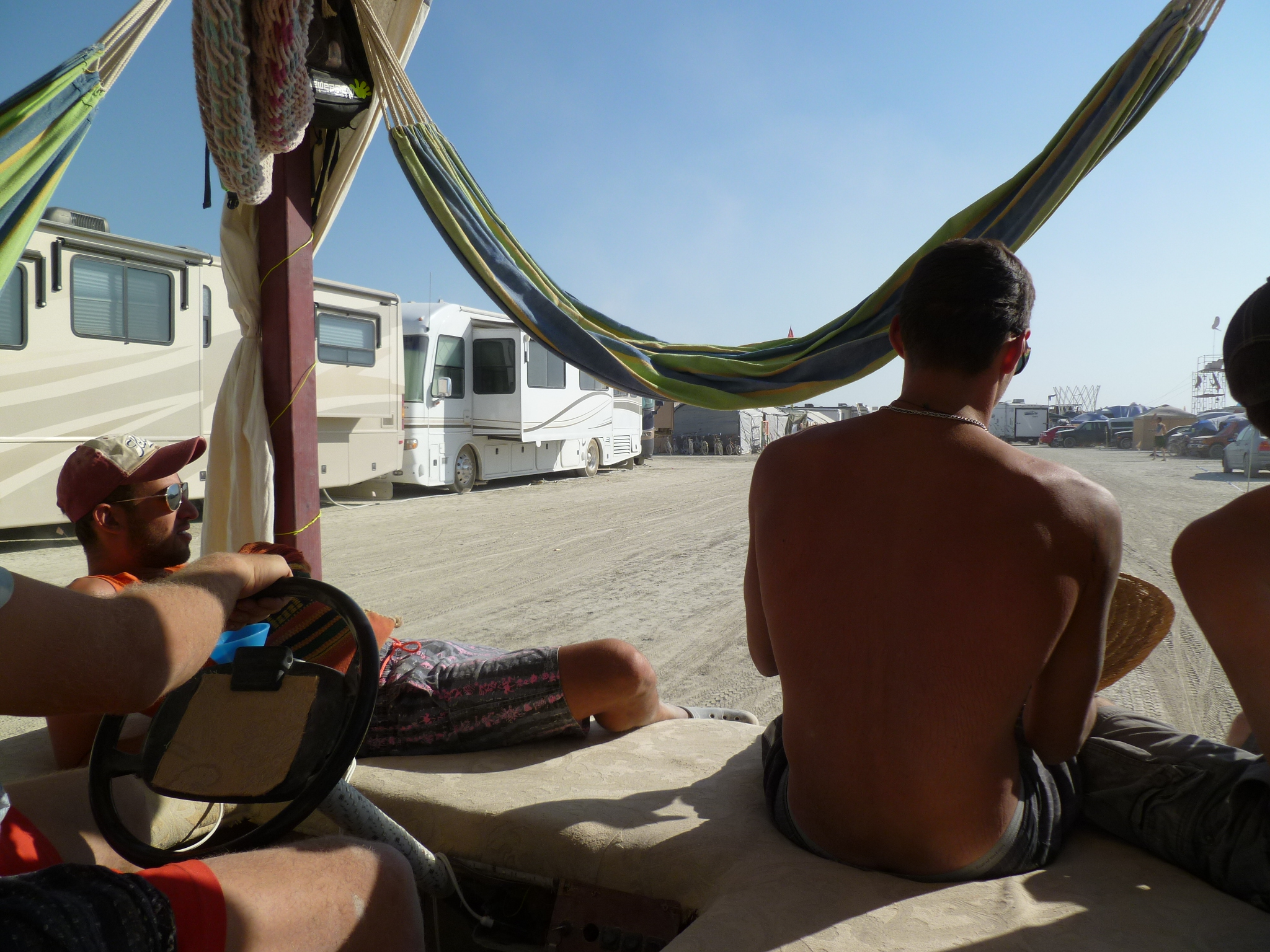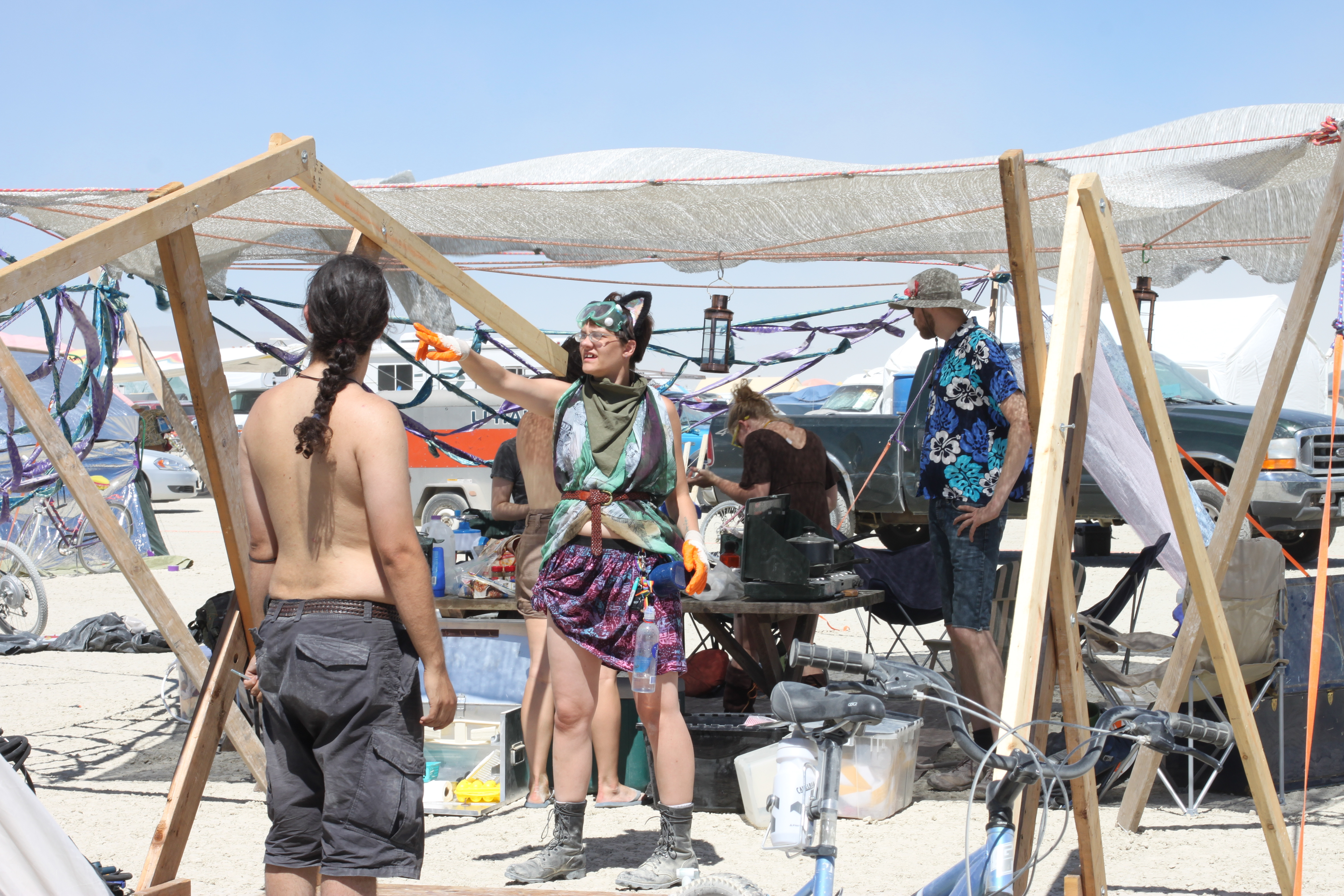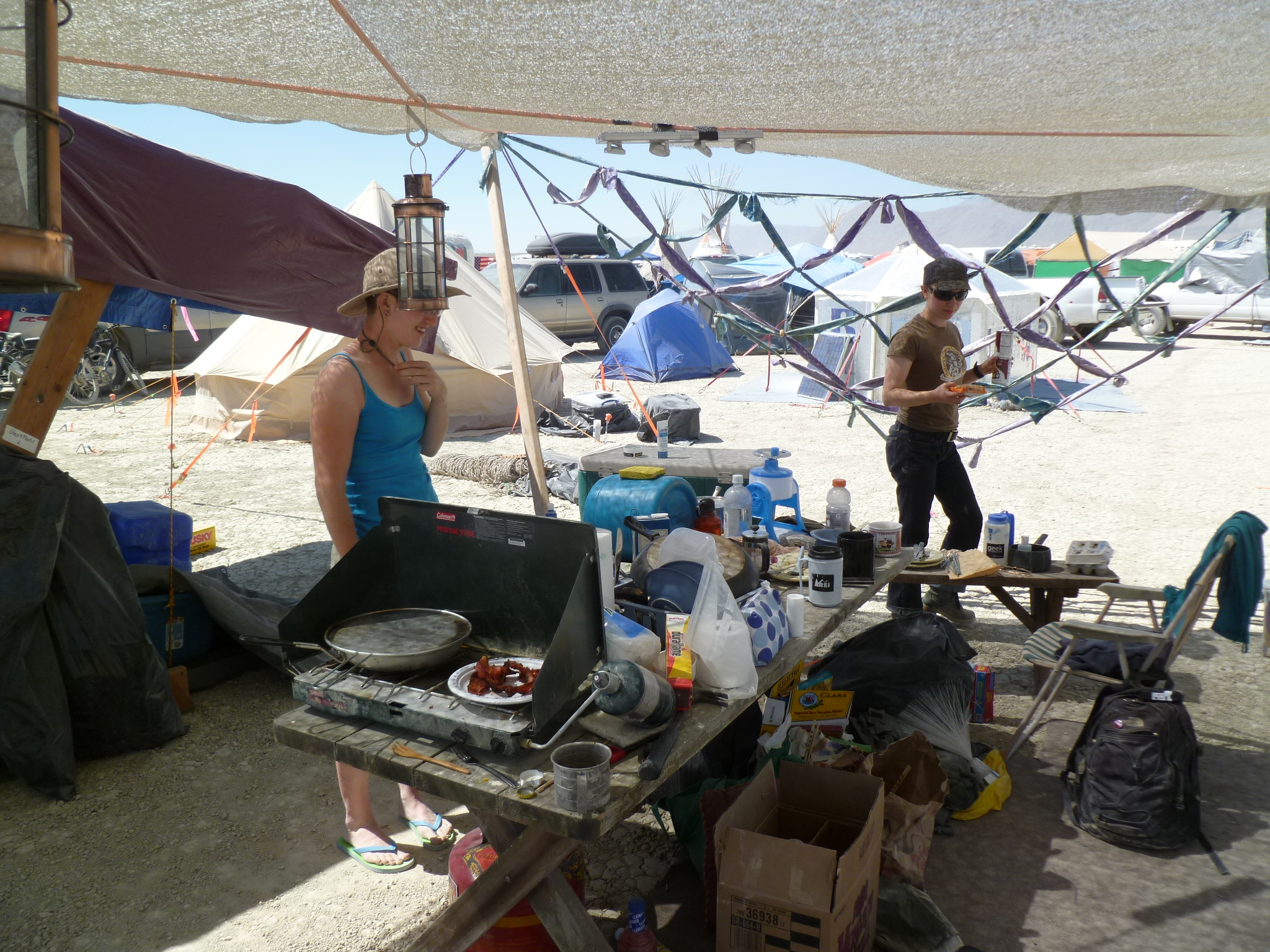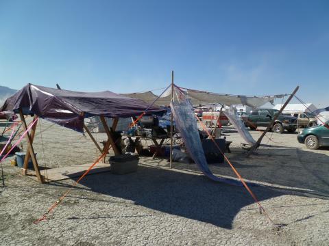 Pentagonal shade structure, center of camp