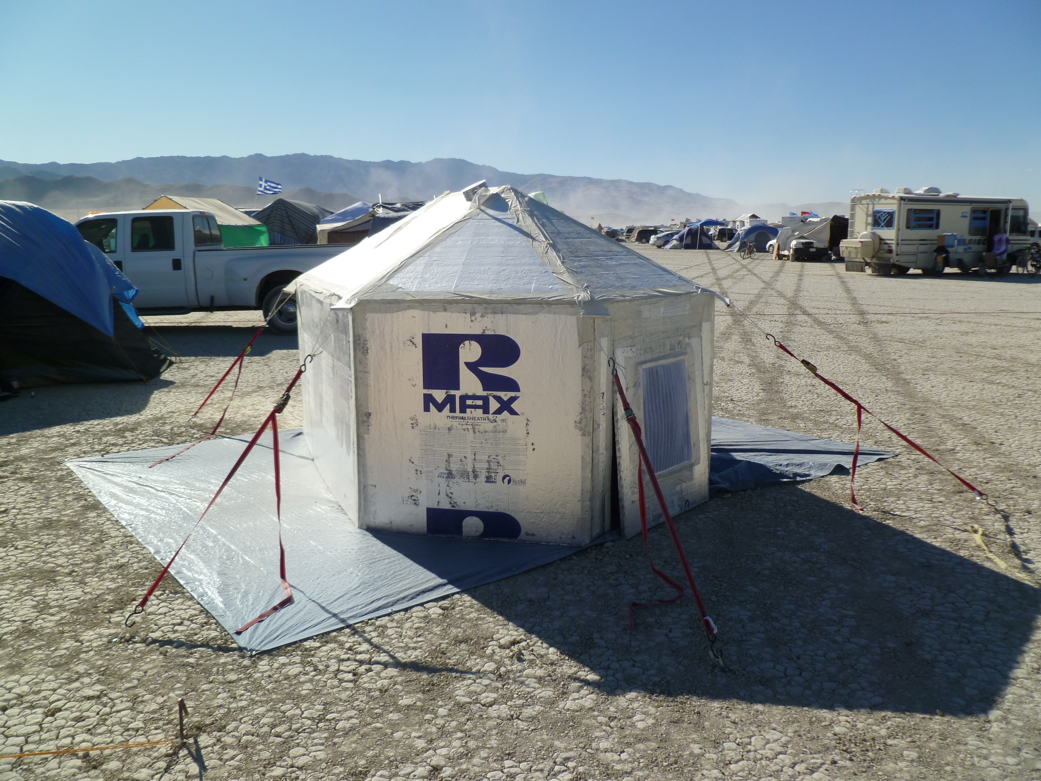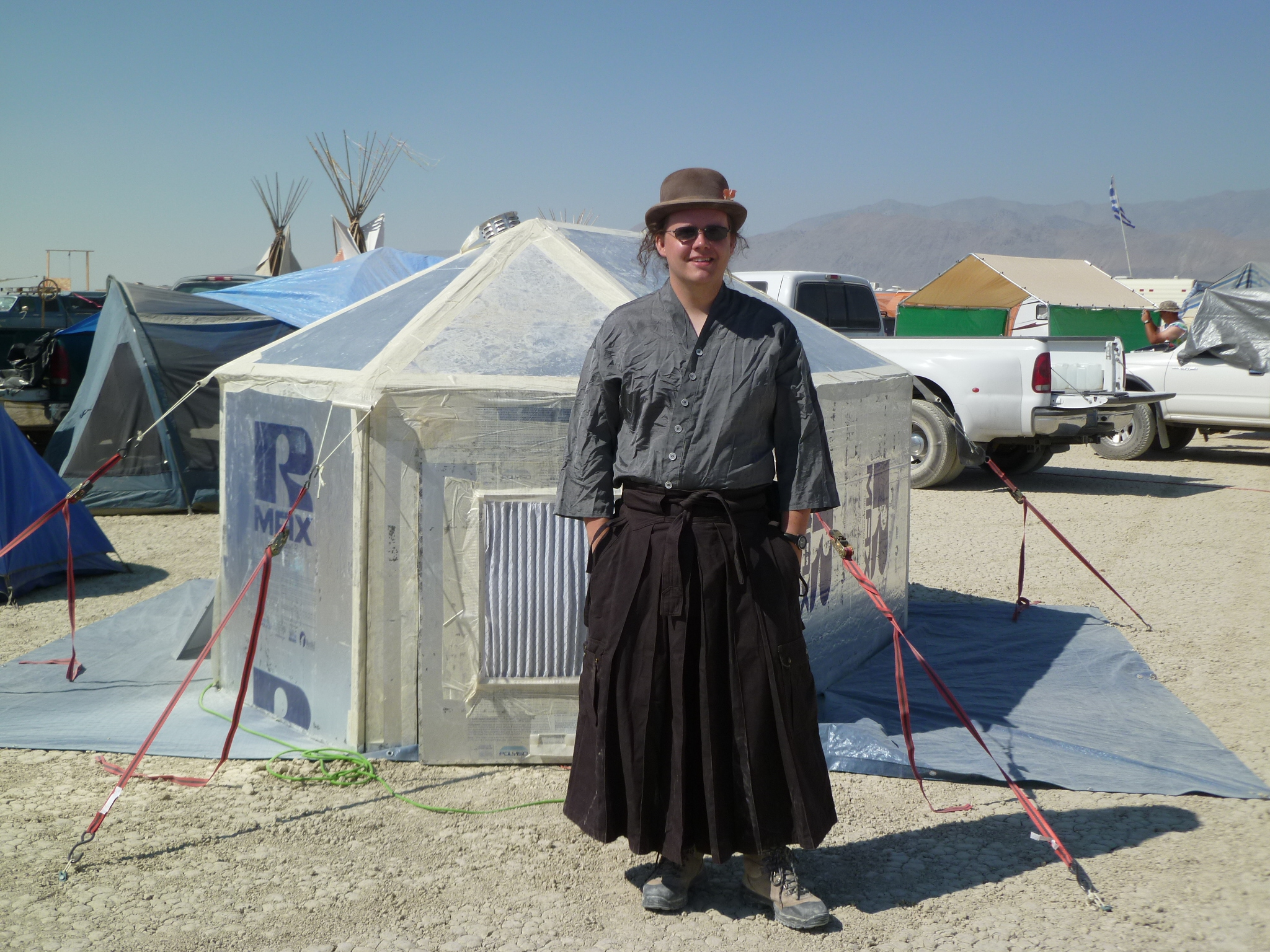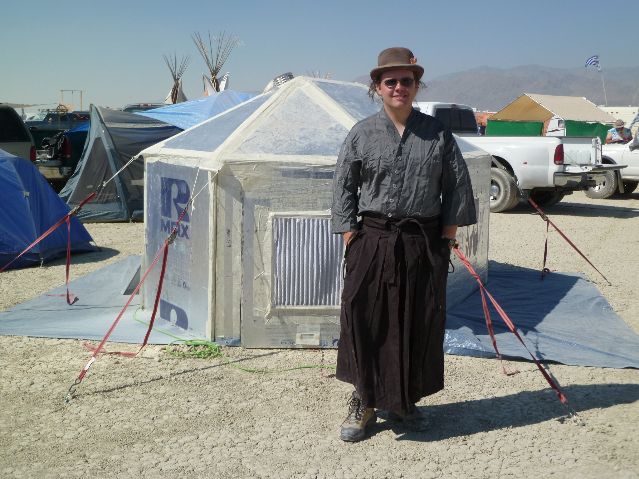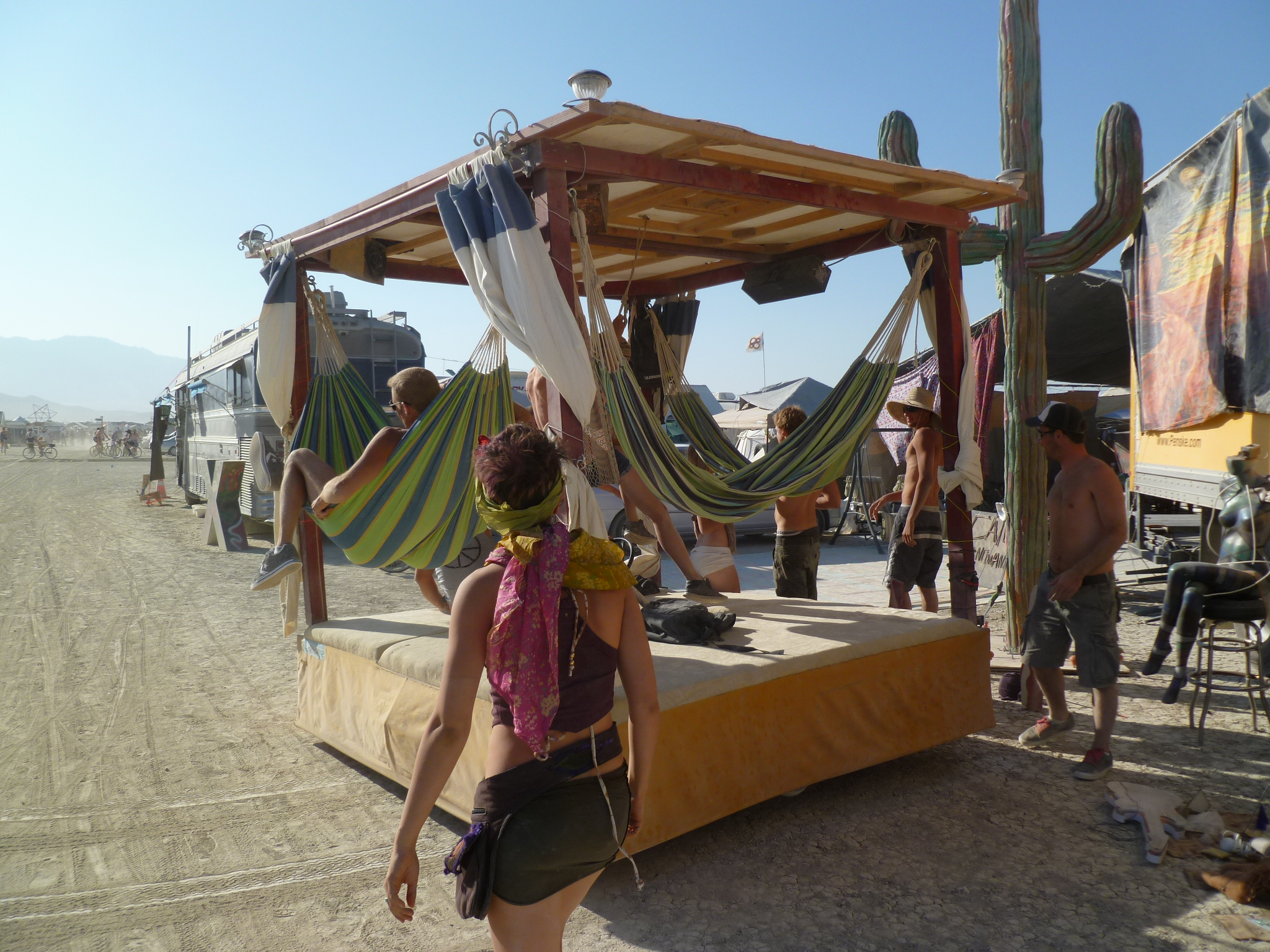 Pentagonal shade structure, center of camp