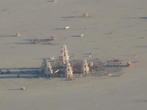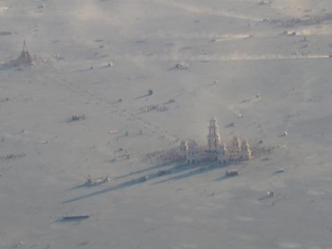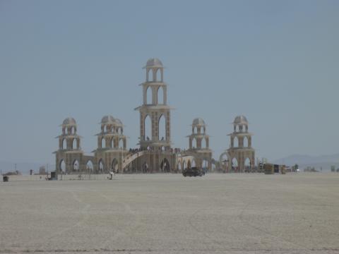 The Temple and The Man in the distance from the deep playa