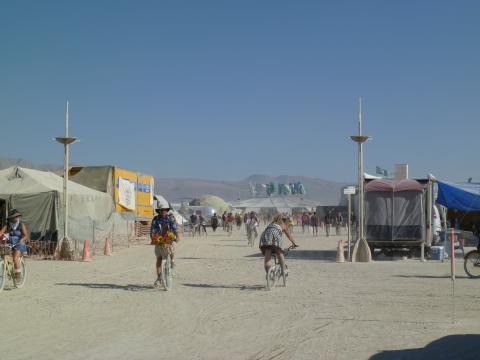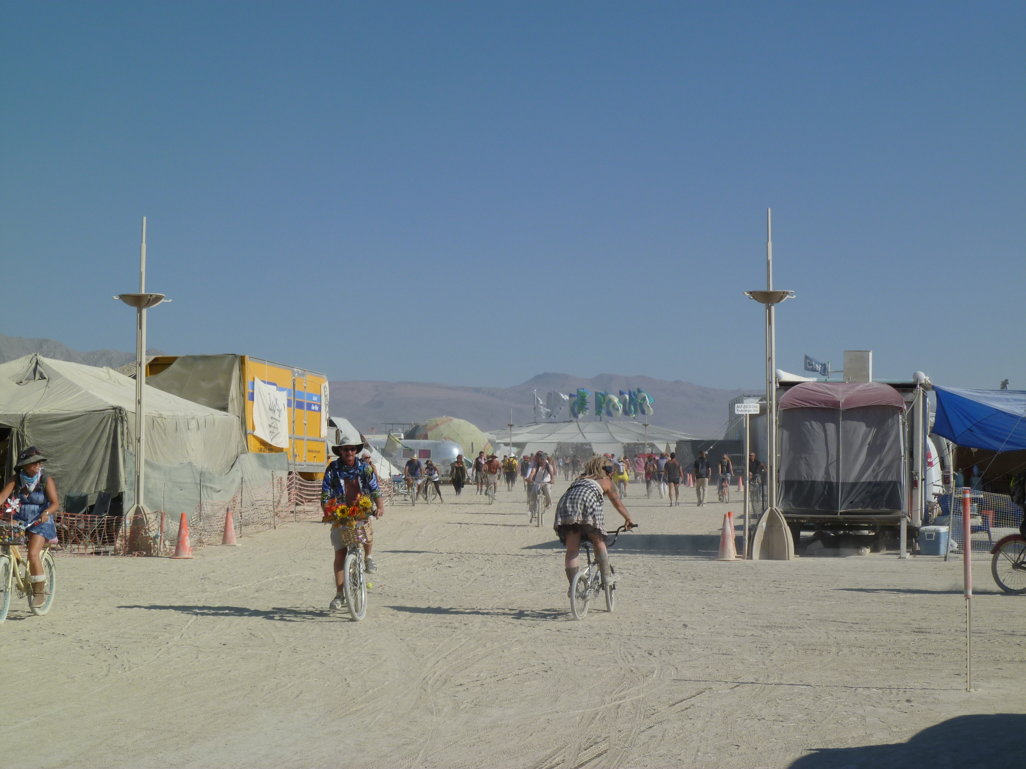 Center Camp down a street, banners flying