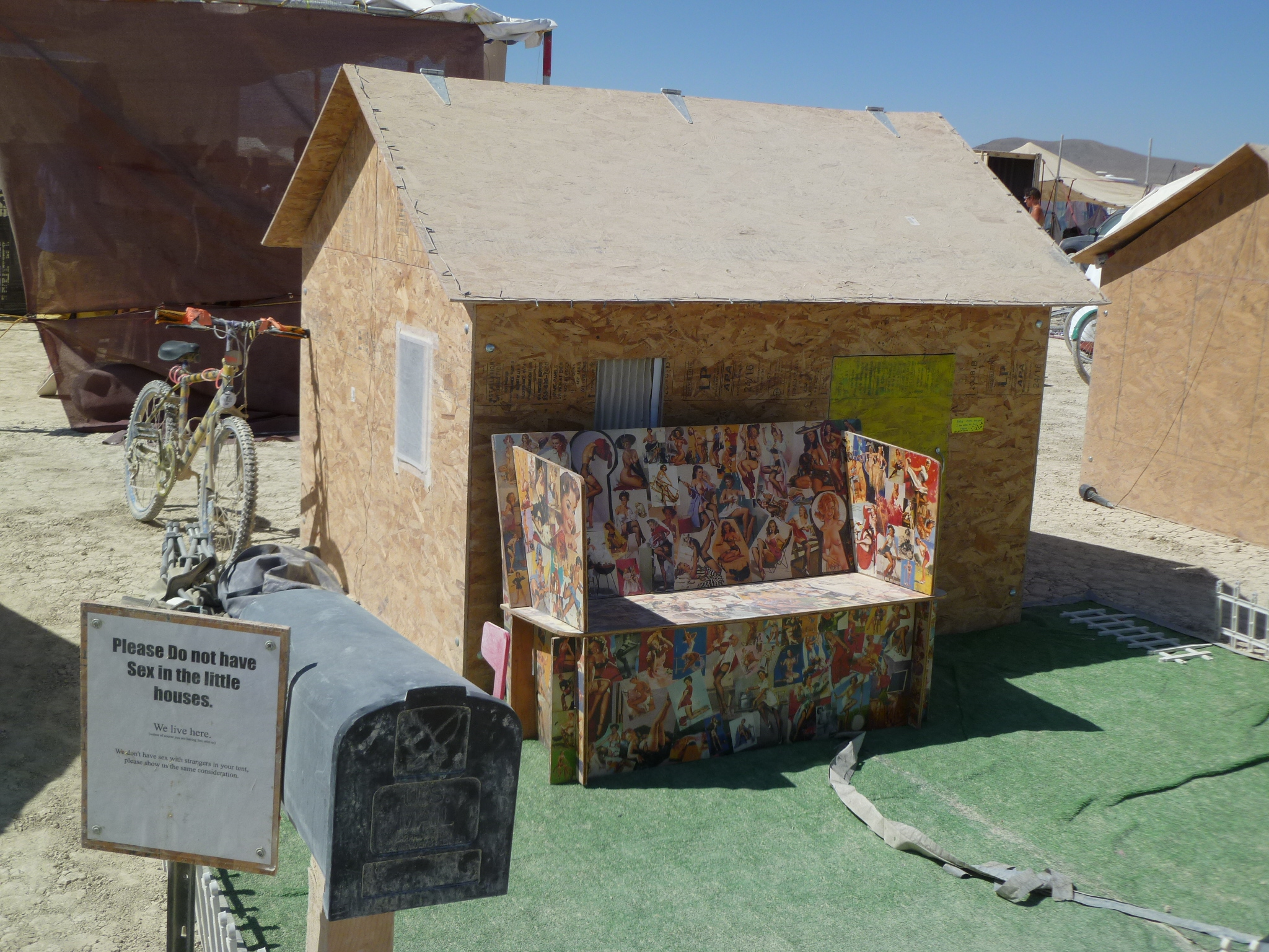 Tiny house with 'don't have sex in the tiny houses (unless it's with one of us)' sign