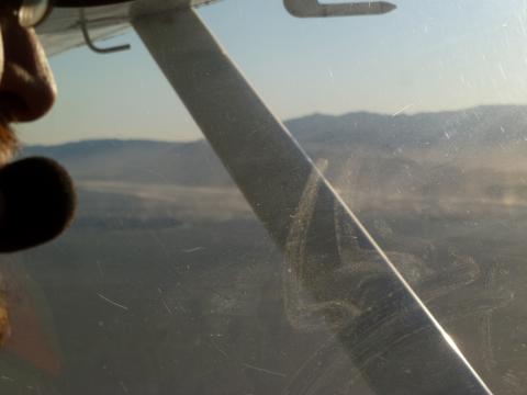 Fish working on the Kalamazoo, folded over sitting in the dust (Ari)