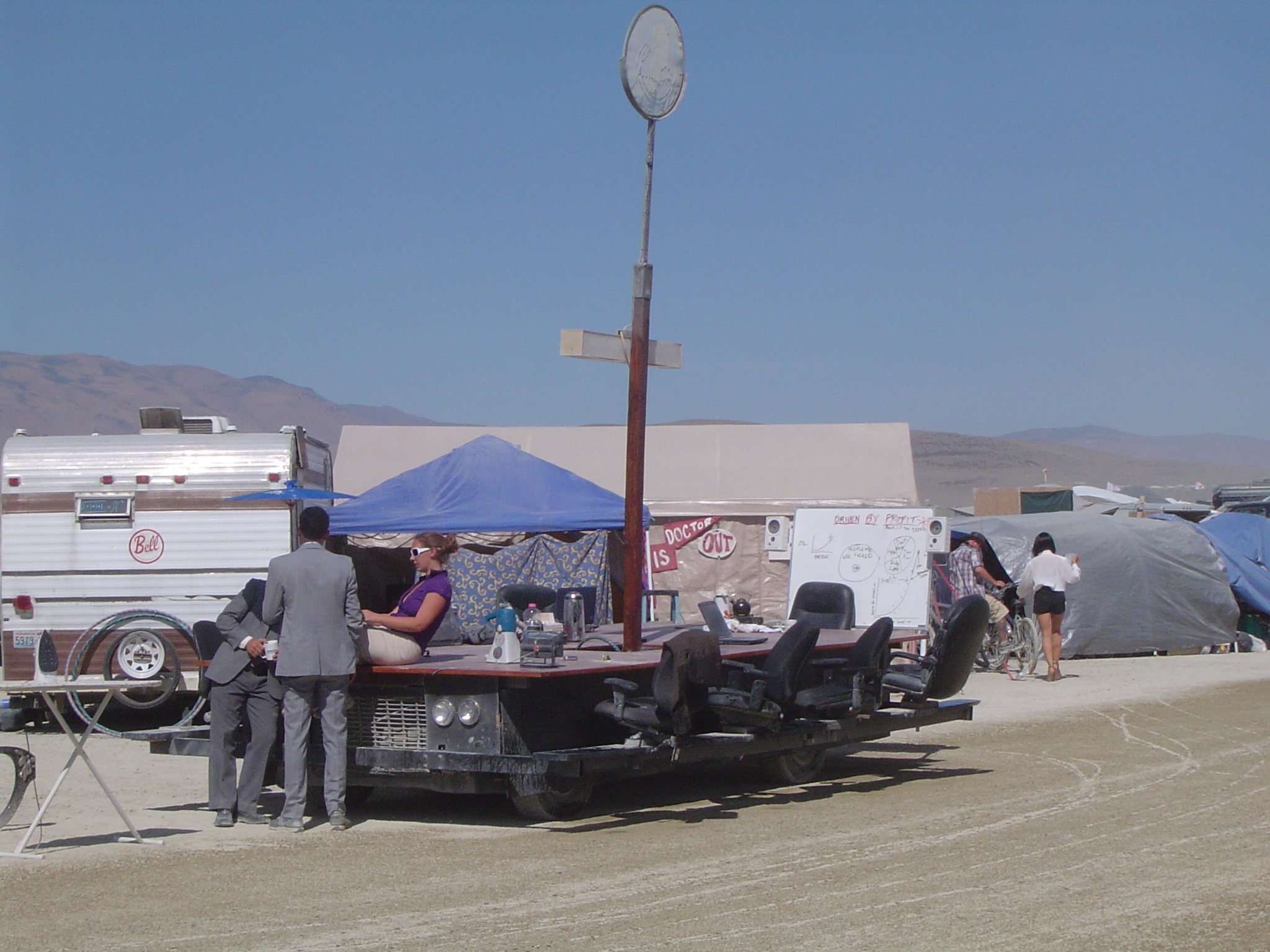 Boardroom art car, about to drive around in suits with a powerpoint presentation yelling at people to get a job